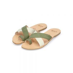 真皮手工交叉帶涼拖鞋 LEATHER CROSS STRAP SANDAL SERENA WHITE & GREEN