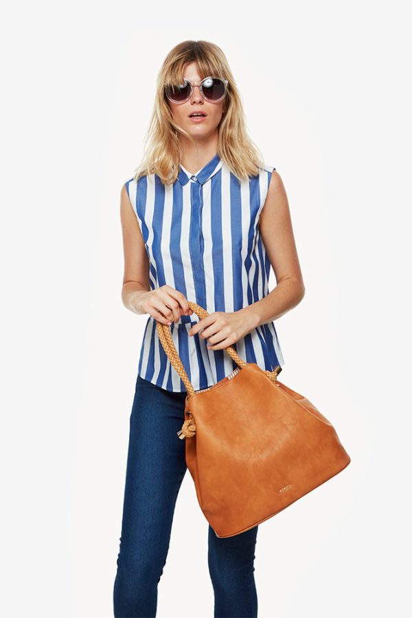 經典編織提帶購物單肩包 SHOPPER BAG COGNAC