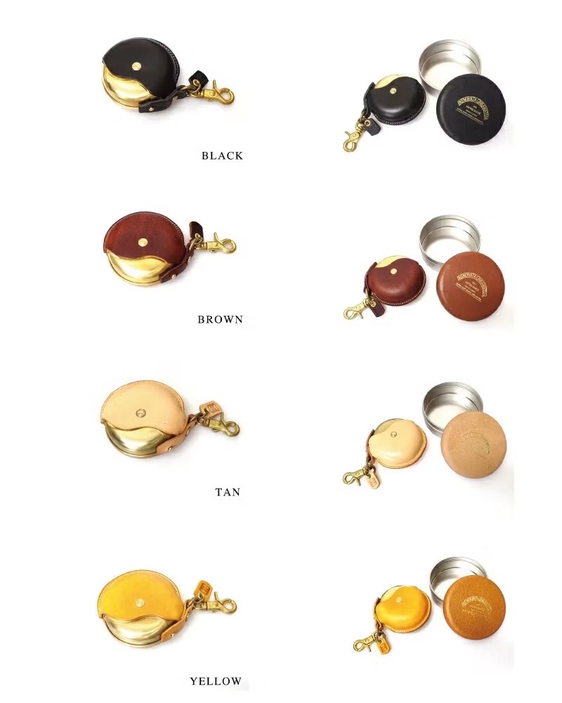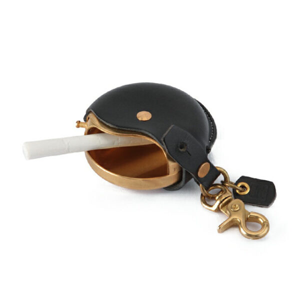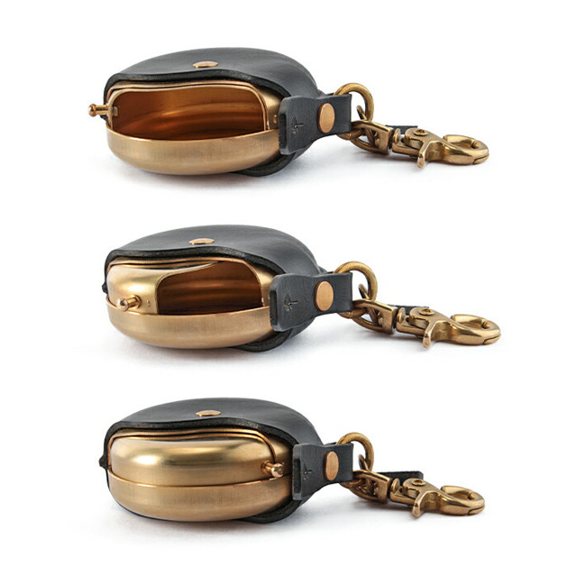 「cramp」旋轉式便攜煙灰缸,皮件選用義大利皮革,黃銅部件為替世界知名品牌代工的東京金屬加工廠生產,使用上可以更加順暢地打開和關閉蓋子。由於黃銅部件沒有經過噴漆等表面處理,所以能夠像皮革一樣享受時間帶來的變化。