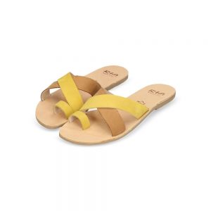 真皮手工交叉帶涼拖鞋 LEATHER CROSS STRAP SANDAL SERENA YELLOW & BROWN
