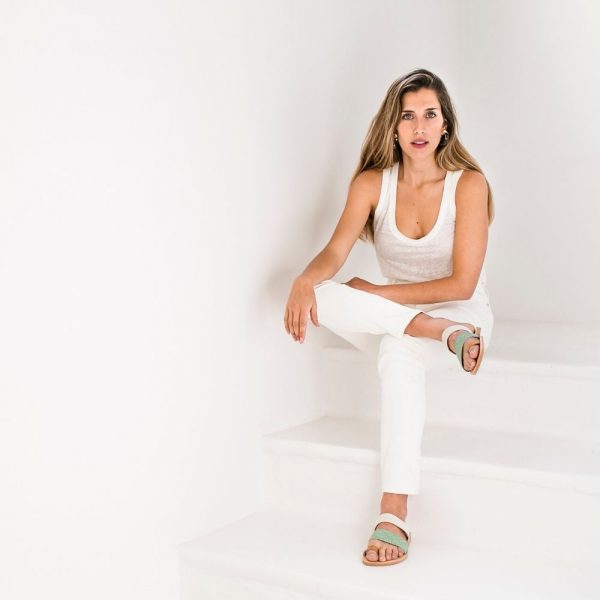 手工真皮編織涼鞋 LEATHER WOVEN STRAP SANDAL CARLA TURQUOISE