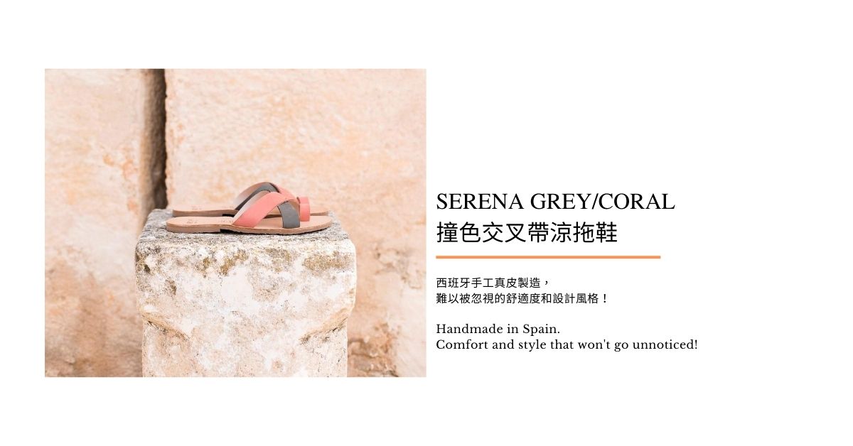 真皮手工交叉帶涼拖鞋 LEATHER CROSS STRAP SANDAL SERENA GREY & CORAL